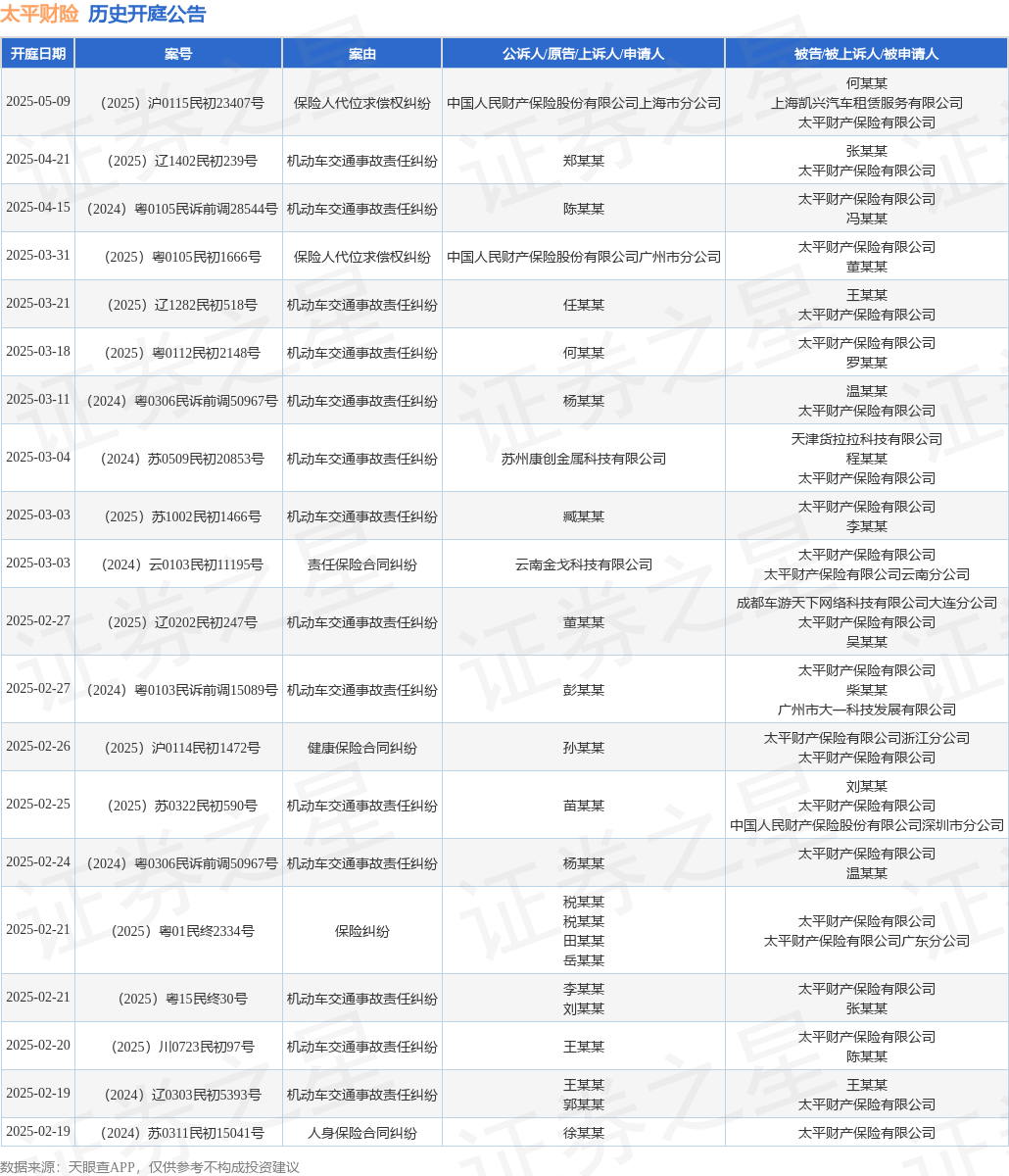 本站消息,根据天眼查APP显示,近日公布了一则太平财产保险有限公司作为被告/被上诉人的开庭公告,详细内容如下: